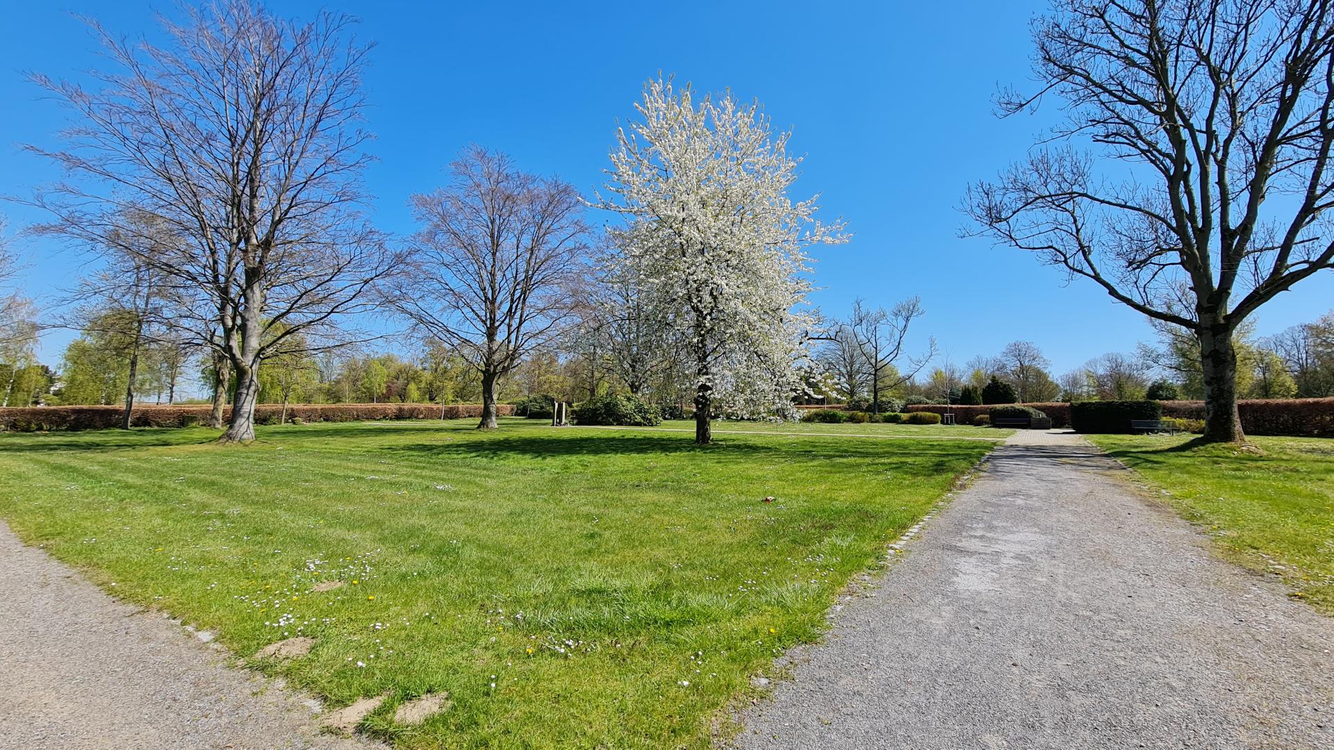 • Sorgenfreie Pflege: Die Beisetzung erfolgt auf einer Rasenfläche, die dauerhaft von der Friedhofsverwaltung professionell instandgehalten wird.