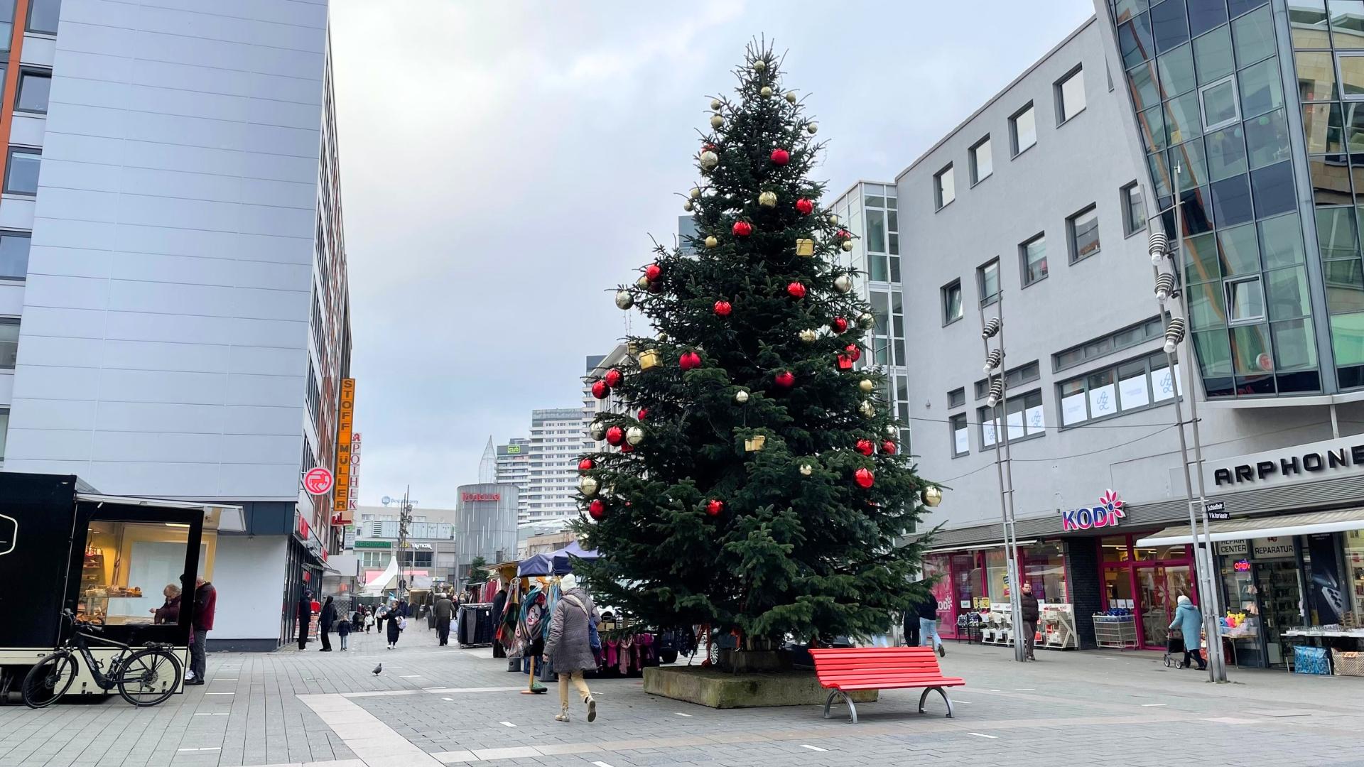 Ein kleines Päuschen in der trubeligen Weihnachtszeit: Dazu locken Glühwein und Kakao, Reibekuchen und Bratwurst, Crêpes und gebrannte Mandeln auf dem Kurt-Schumacher-Platz vor dem FORUM. Der große Weihnachtsbaum funkelt festlich und ein Kinderkarussell steht für fröhliche Runden bereit.