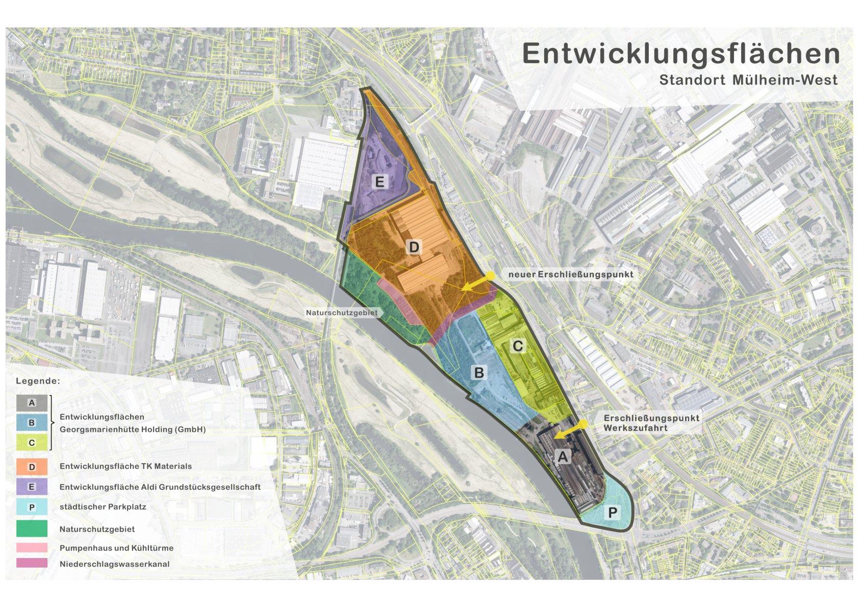 Im Rahmen der durch thyssenkrupp beabsichtigten Veräußerung des 12 Hektar großen Geländes stellten sich der Verwaltung und Kommunalpolitik mit ihren Zielvorstellungen zur Entwicklung der Fläche vor. Die städtischen Zielvorgaben für eine zukünftige gewerbliche und/oder industrielle Nutzung der Fläche unter Berücksichtigung des Erhalts der bestehenden Gleistrassen sowie der zur Fortführung der Ruhrpromenade mit Anschluss an den Styrumer Schlossweg notwendigen Flächen sollten sich in den städtebaulichen Entwürfen widerspiegeln.